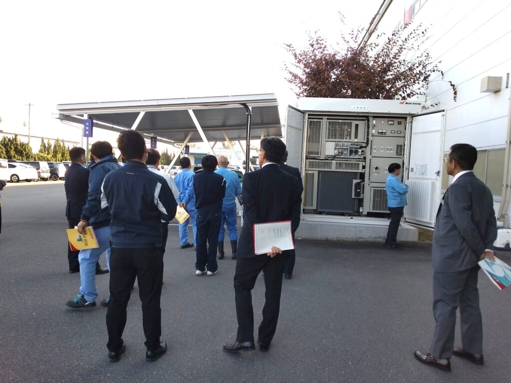 「かがわエネルギー産業フォーラム県内視察in株式会社Wave Energy」を開催し、当社の第一工場に導入している太陽光発電設備と伴に、蓄電池システムやカーポートの活用についてご紹介いたしました。