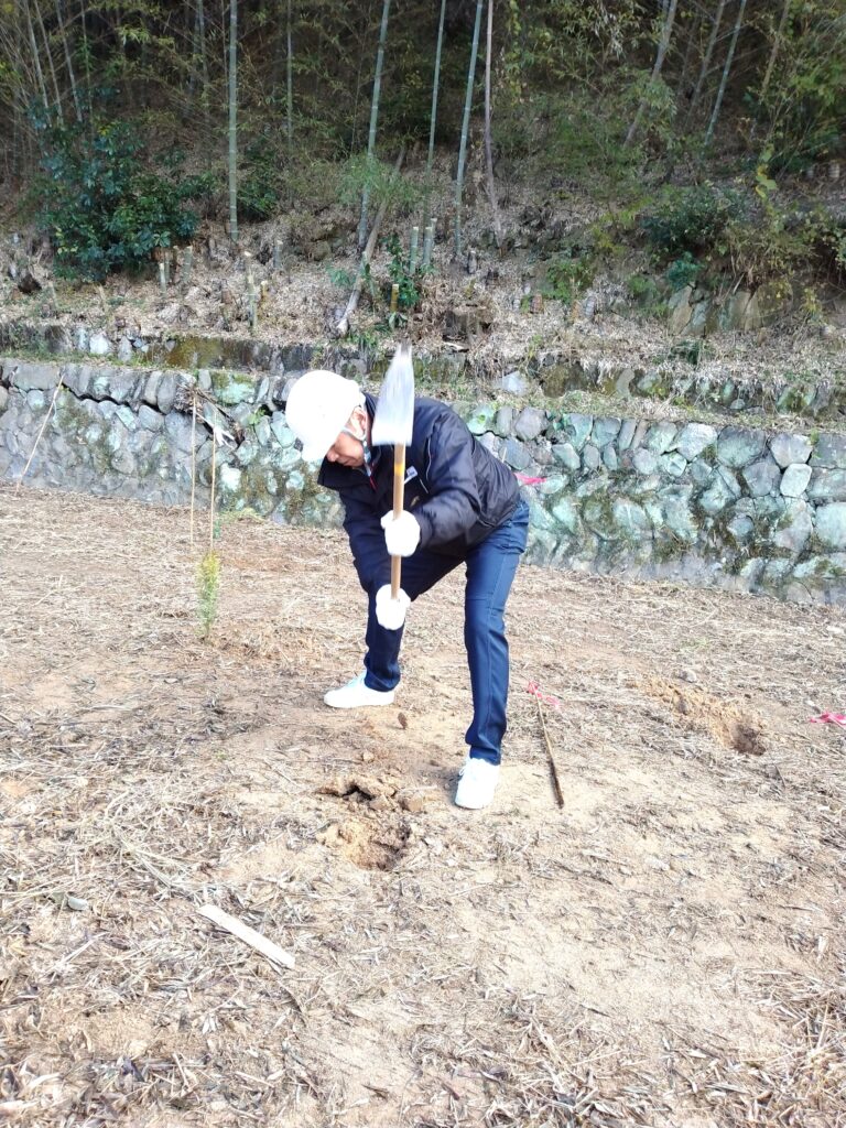 当日は、三豊市長様をはじめ、市内企業の皆様や近隣の小学生も一緒に苗木を植えました。